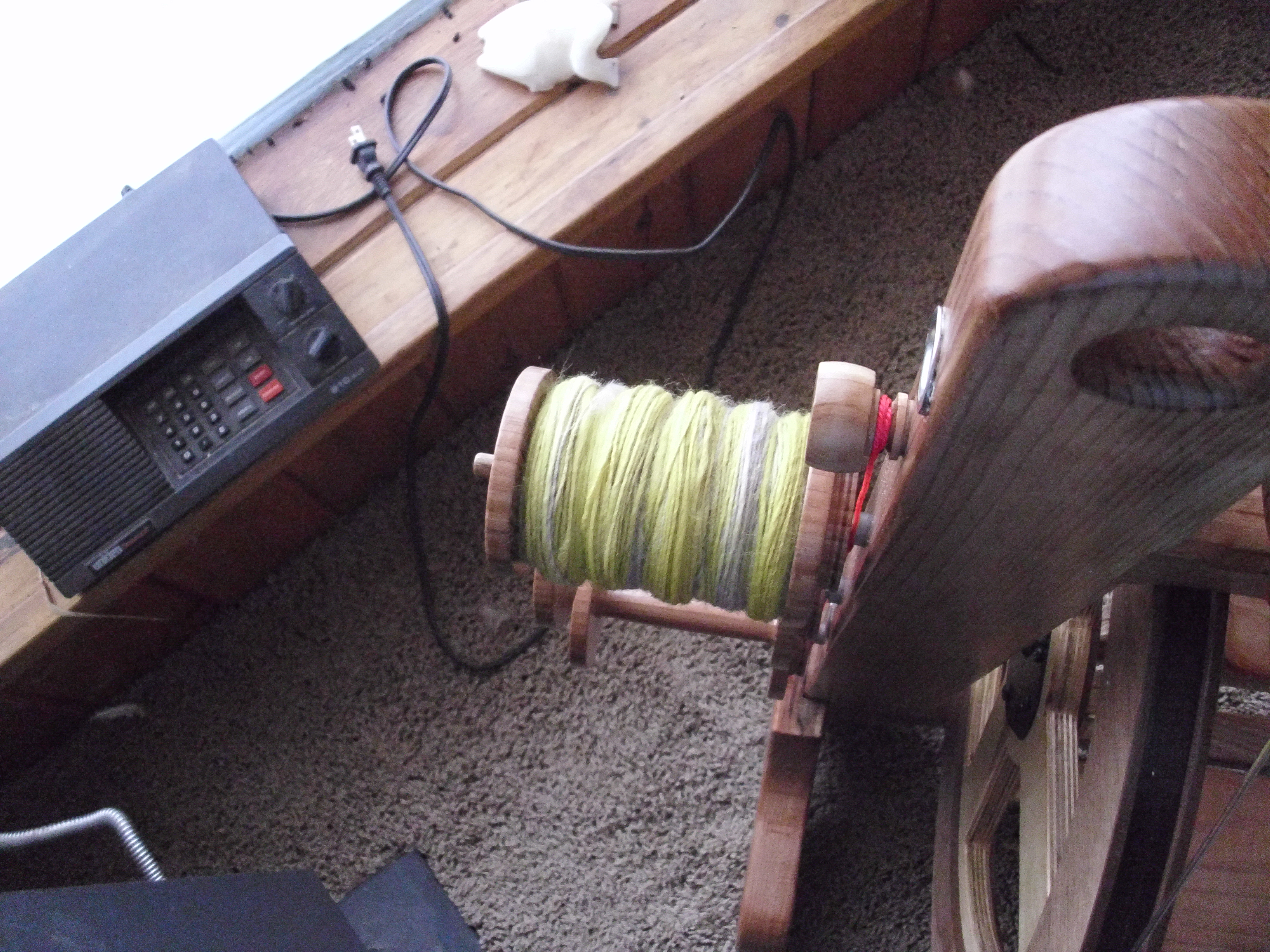 After making sure the animals were snug and comfortable. I sat down for some spinning as I watched the snow fall.