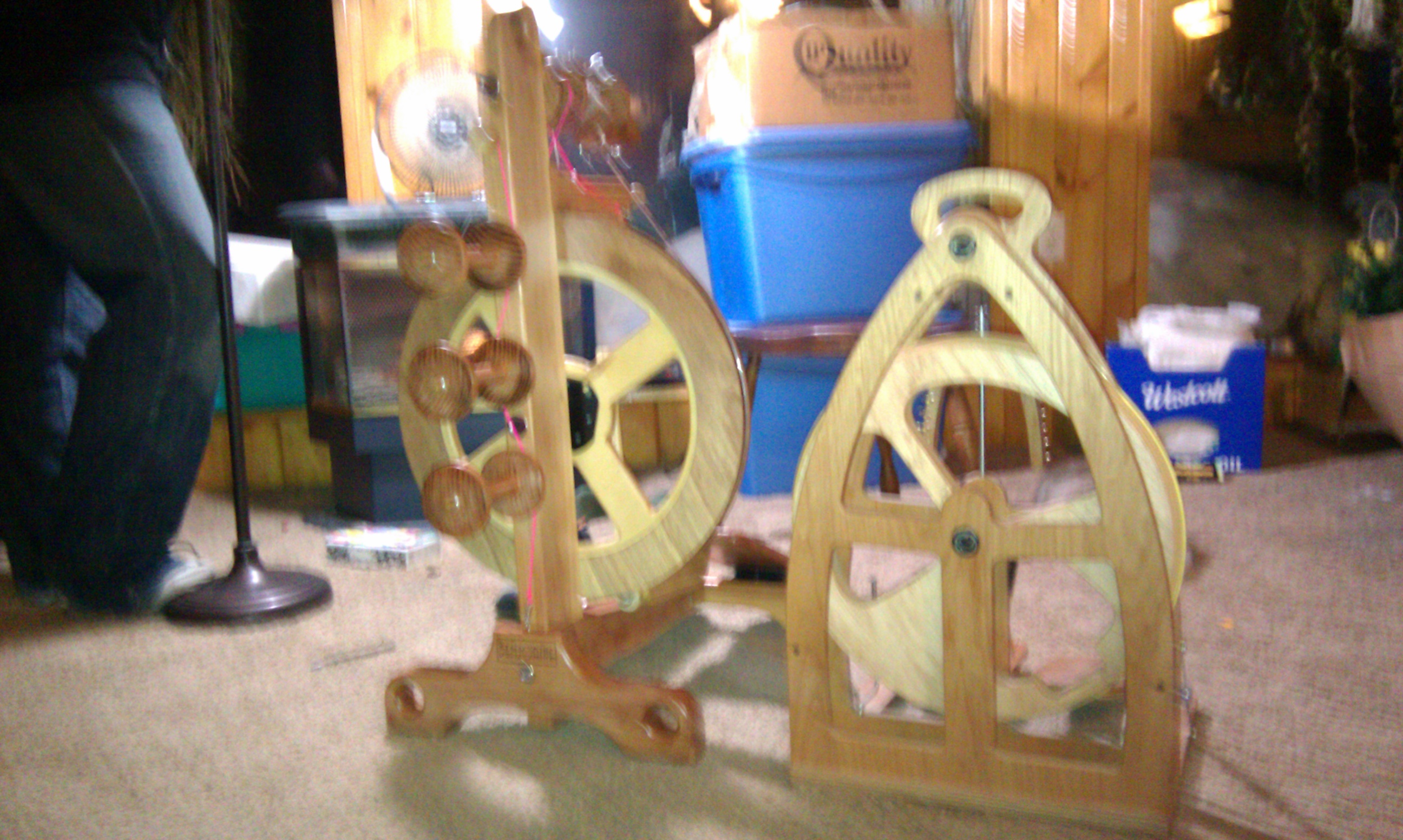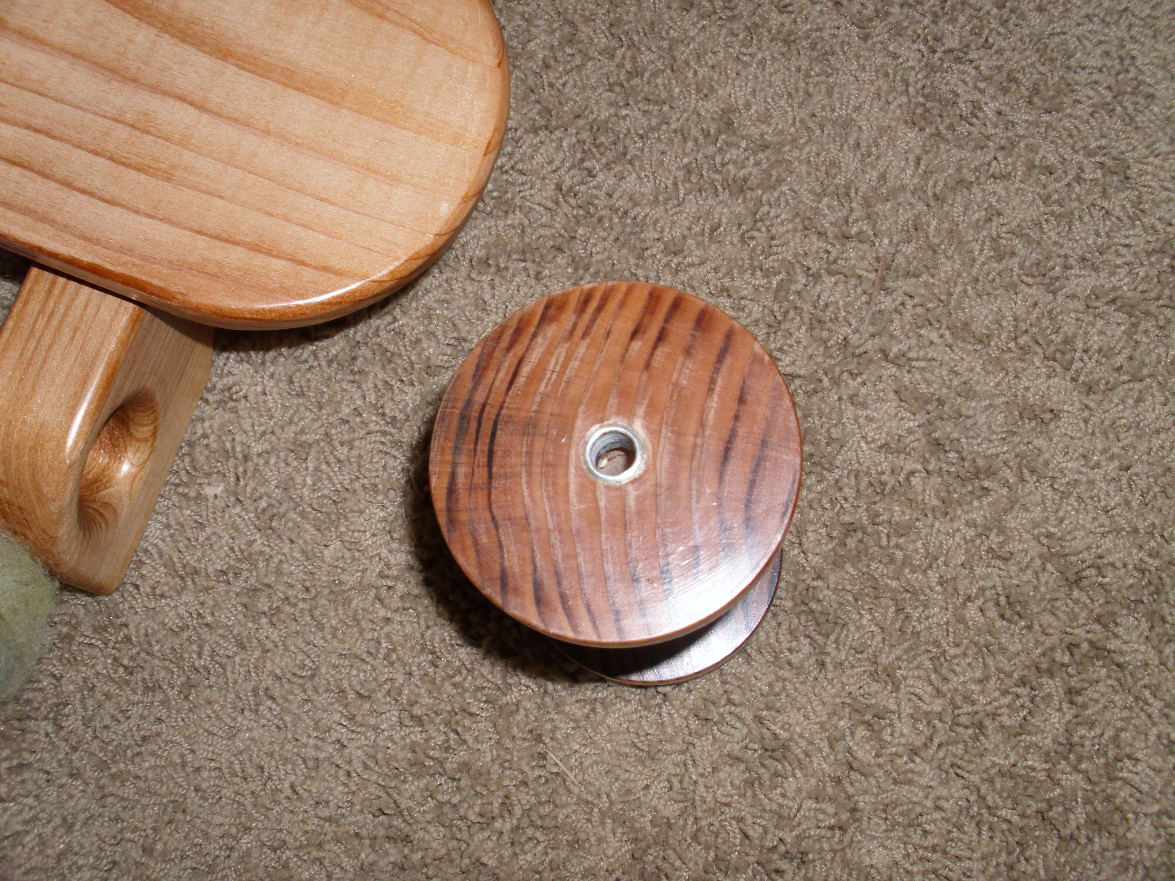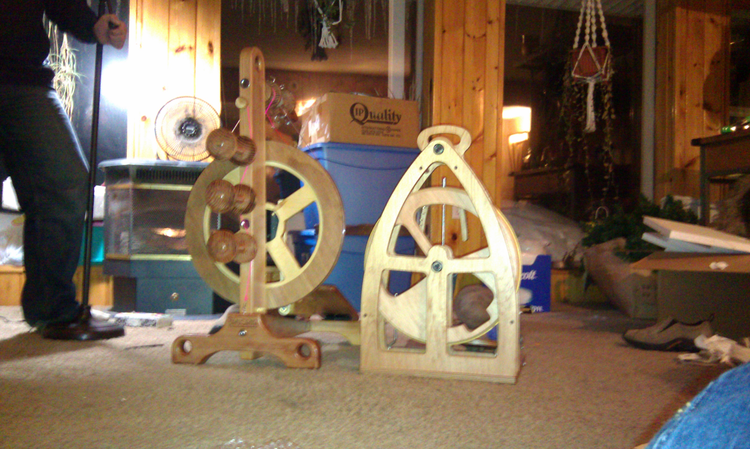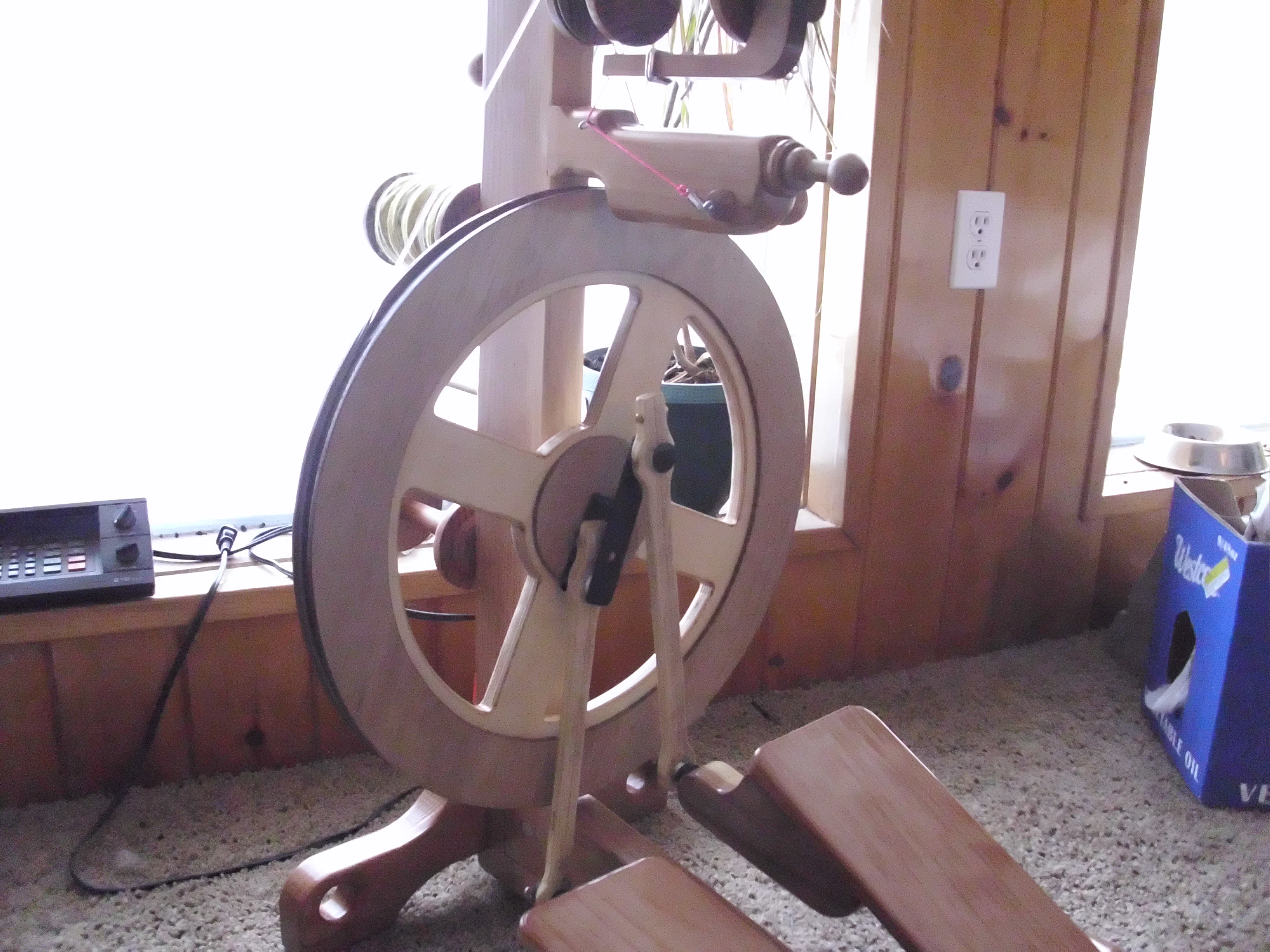 One my christmas gifts this year from my wonder hubs was a beautiful handmade Sequoia spinning wheel. It’s made from redwood and just gorgeous. The wheels are made to order so depending on where you are on the list will determine how fast you receive your wheel. I love this wheel the craftsmanship is beautiful and it spins so smoothly. Some of the features are: it stands on 4 legs that double as lead-holes for plying, it has an on board tensioned lazy kate, comes with 4 ratios but the whorls are interchangeable which means you can ask for customized whorls, the maiden doubles as an orifice hook, and comes with 4 bobbins standard. The wheel comes partially disassembled with everything you need to assemble it in the box(they even included the screwdriver). It took me about 45 minutes to assemble. I actually ran into a what I thought was a problem and called the company they were right there I talked to both Ben and Joanie. They were able to talk me right thru the issue immediately. They both were incredibly sweet. Spinning on the Sequoia is definitely different than my Ashford Joy. The orifice sits much higher. I find that I sit much further away from the wheel. That felt a bit strange at first but I found I was spinning the exact same way that I do on my Joy or a drop spindle and I got very comfortable. Here are some of my pictures when I was assembling my Sequoia.