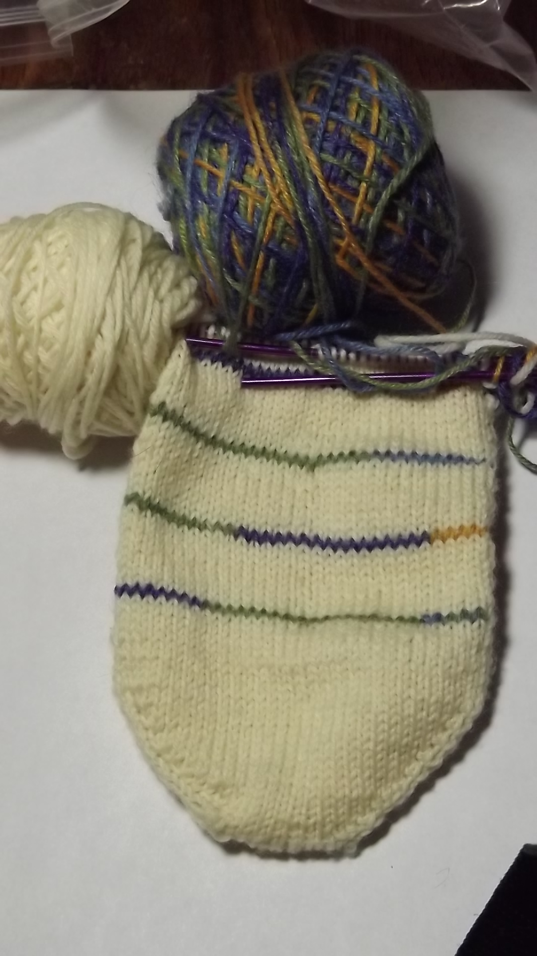 The knitting on the socks is going a bit slow as it is traditional sock yarn.