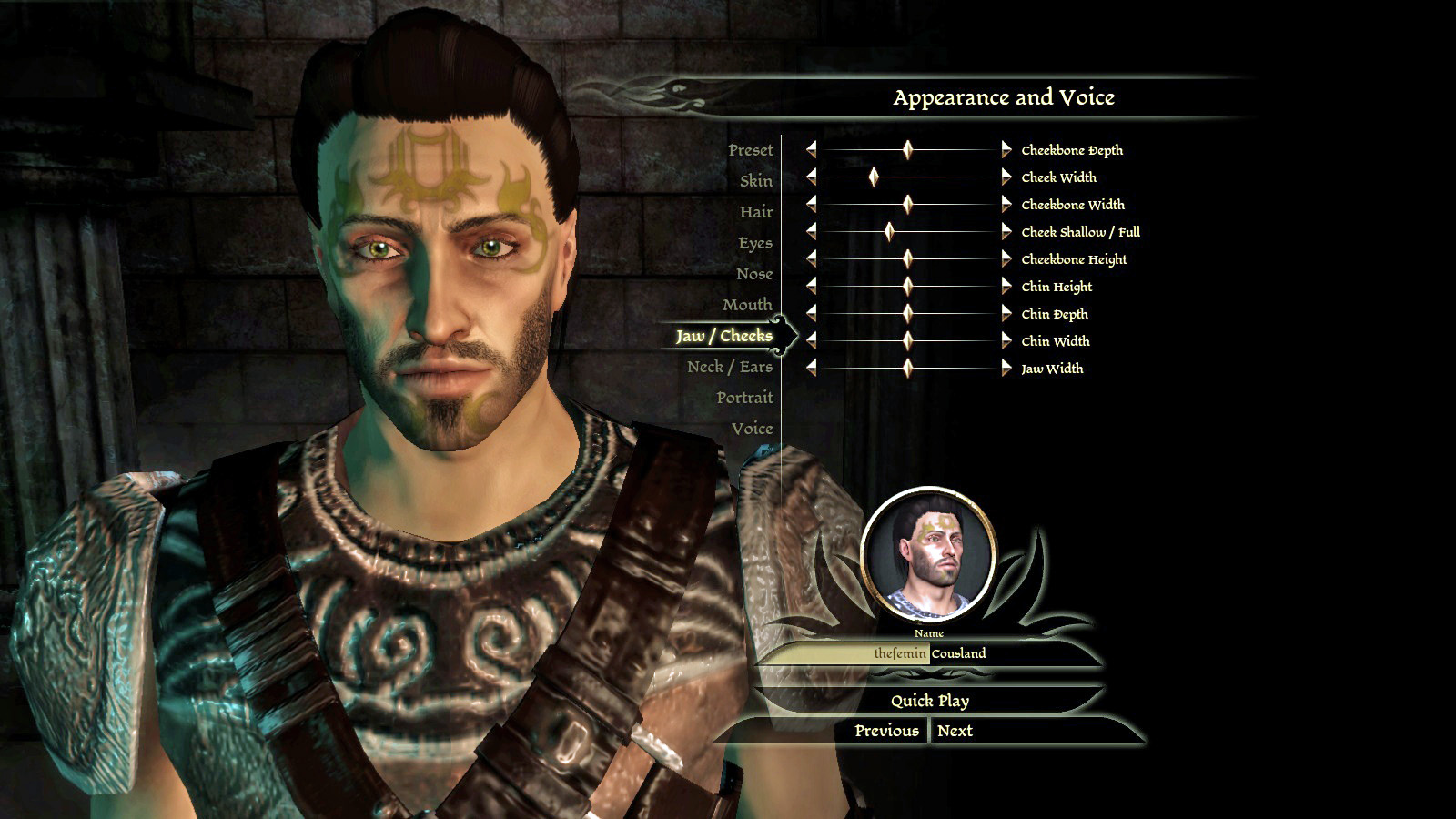 With Dragonage 3 coming out this fall, I wanted to show some of my Dragon Age Origins love. One the awesomest (is that a word) things about dragon age is the ease of modding to make the character really personalized. So I added some of my favorite Character Creator Mods and had some fun with making some of the most gorgeous characters I could. I will name all mods I used and the authors at the end of the post. So Idecided to to the men of Dragon Age first.